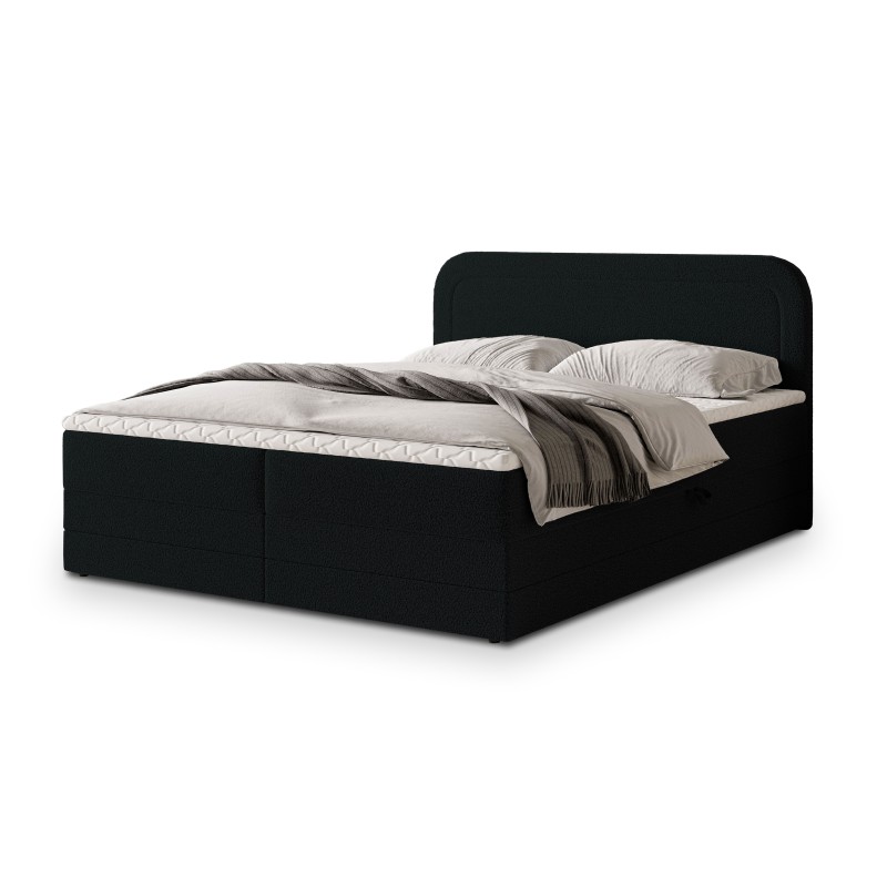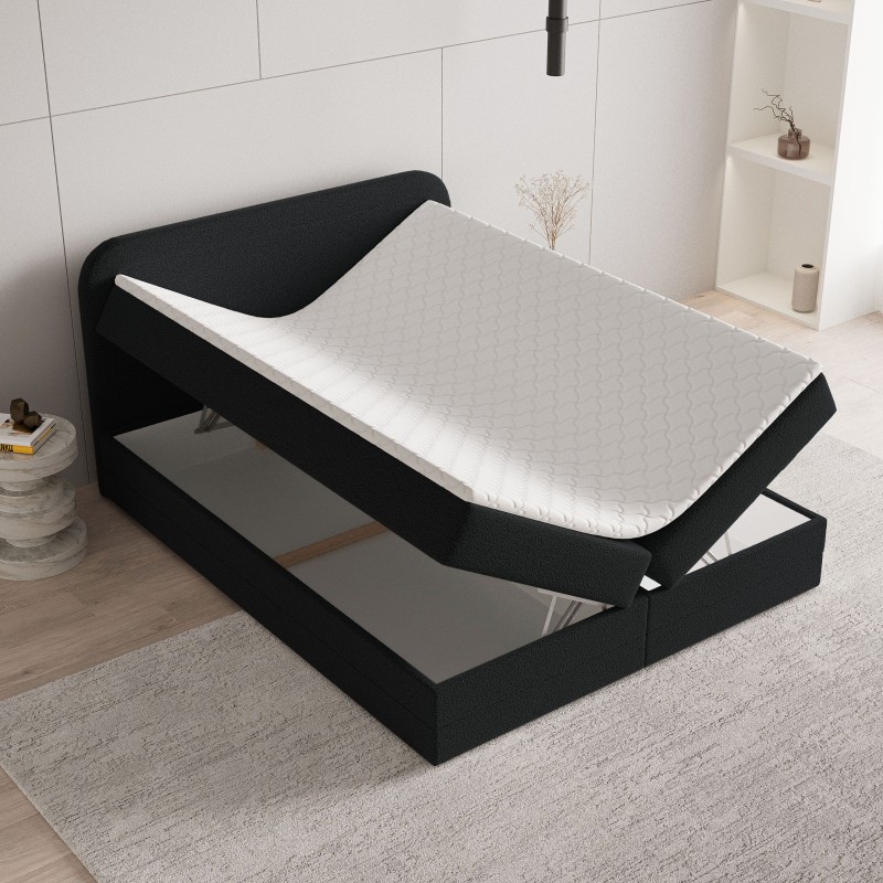 Masseno Łóżko kontynentalne ARMEL z pojemnikiem na pościel 140x200 cm - Czarny, NOW OR NEVER 100