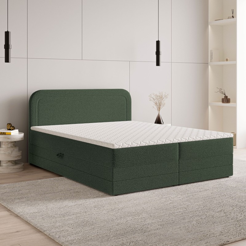 Masseno Łóżko kontynentalne ARMEL z pojemnikiem na pościel 140x200 cm - Zielony, NOW OR NEVER 37