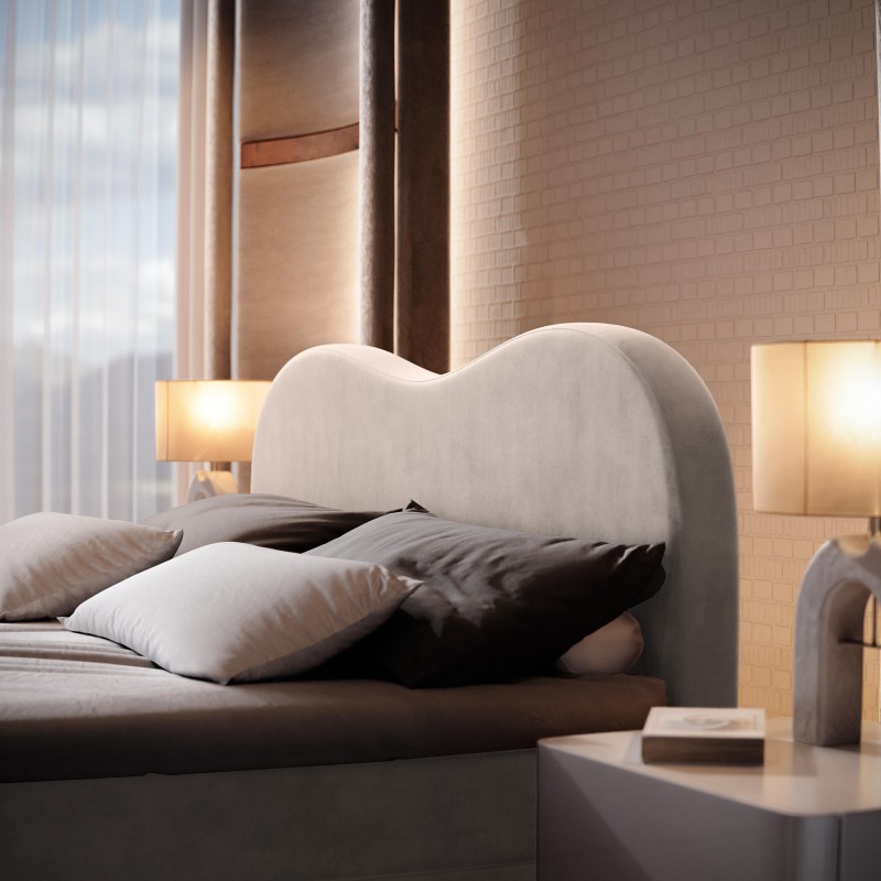 - Nowoczesne zaoblone linie i subtelne detale sprawiają, że łóżko FLUVIA doskonale komponuje się zarówno w nowoczesnych, jak i bardziej klasycznych wnętrzach. Dzięki minimalistycznej formie i wysokiej jakości tapicerce staje się centralnym punktem każdej sypialni.
