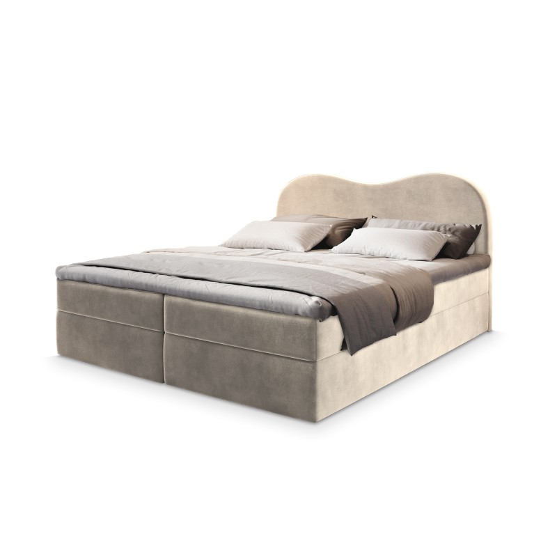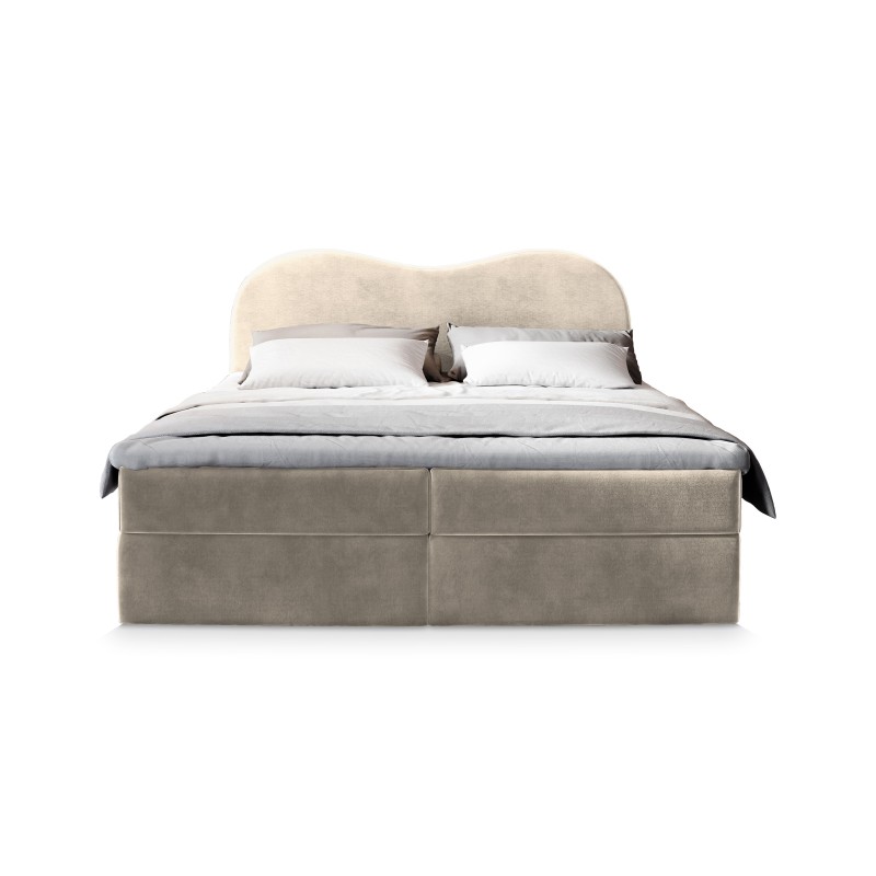 Masseno Łóżko kontynentalne FLUVIA z pojemnikiem na pościel 140x200 cm - Kremowy, MONOLITH 04