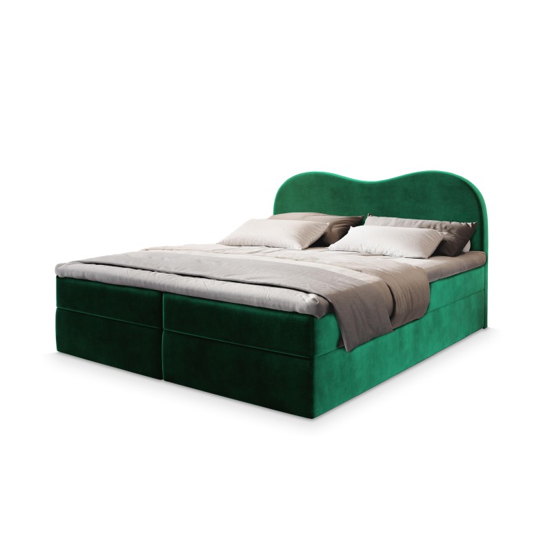 Masseno Łóżko kontynentalne FLUVIA z pojemnikiem na pościel 140x200 cm - Butelkowa zieleń, MONOLITH 37