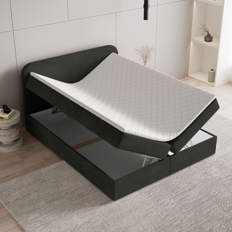 Masseno Łóżko kontynentalne ARMEL z pojemnikiem na pościel 140x200 cm - Czarny, MONOLITH 95