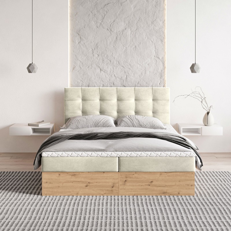 Masseno Łóżko kontynentalne MOLVEN z pojemnikiem na pościel 140x200 cm - Kremowy, SORO 02