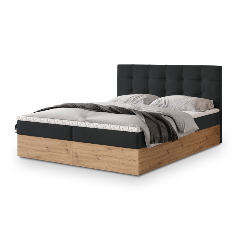 Masseno Łóżko kontynentalne MOLVEN z pojemnikiem na pościel 140x200 cm - Czarny, SORO 100