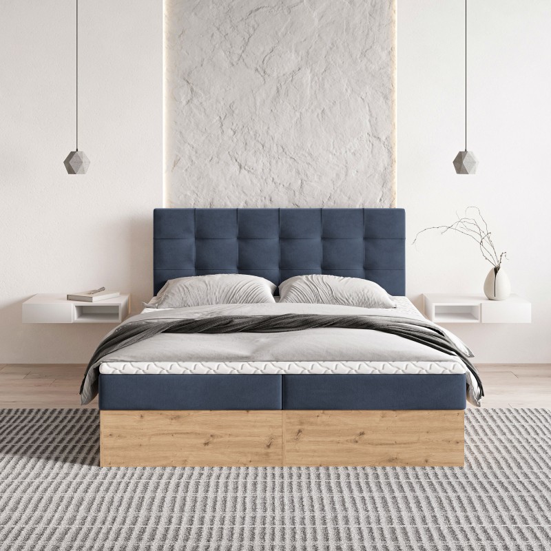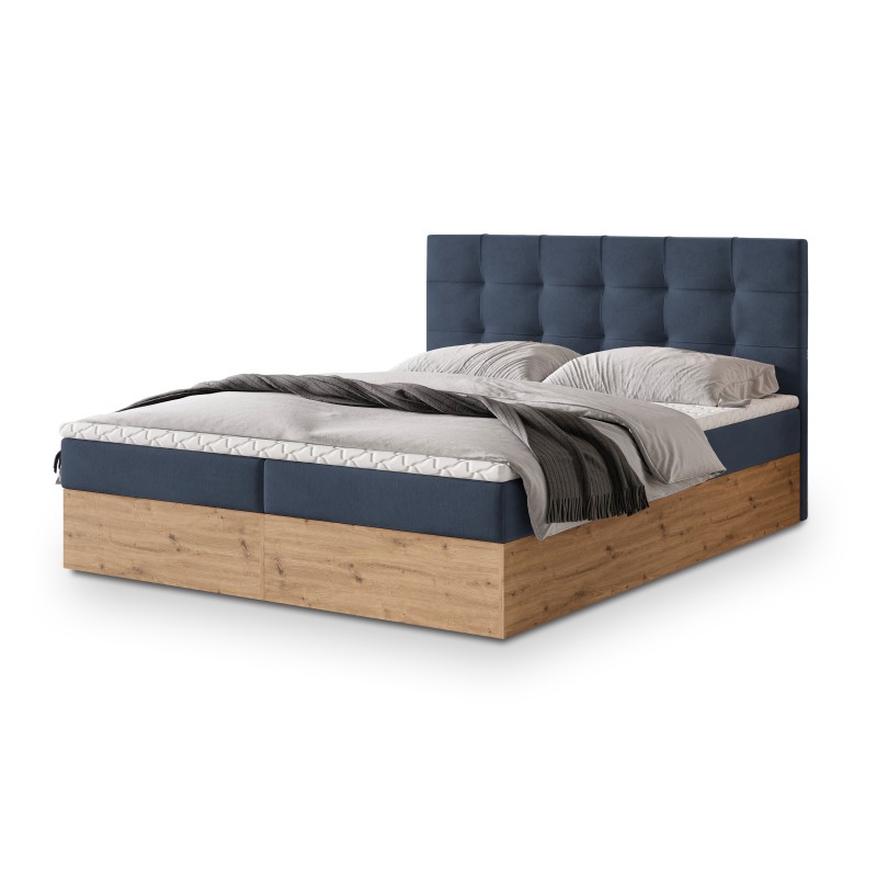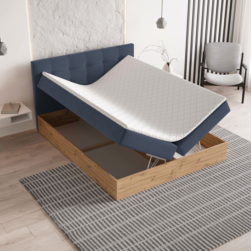 Masseno Łóżko kontynentalne MOLVEN z pojemnikiem na pościel 140x200 cm - Niebieski, SORO 76