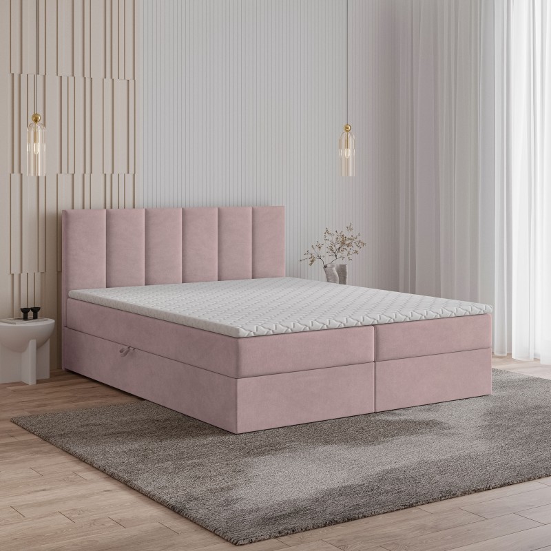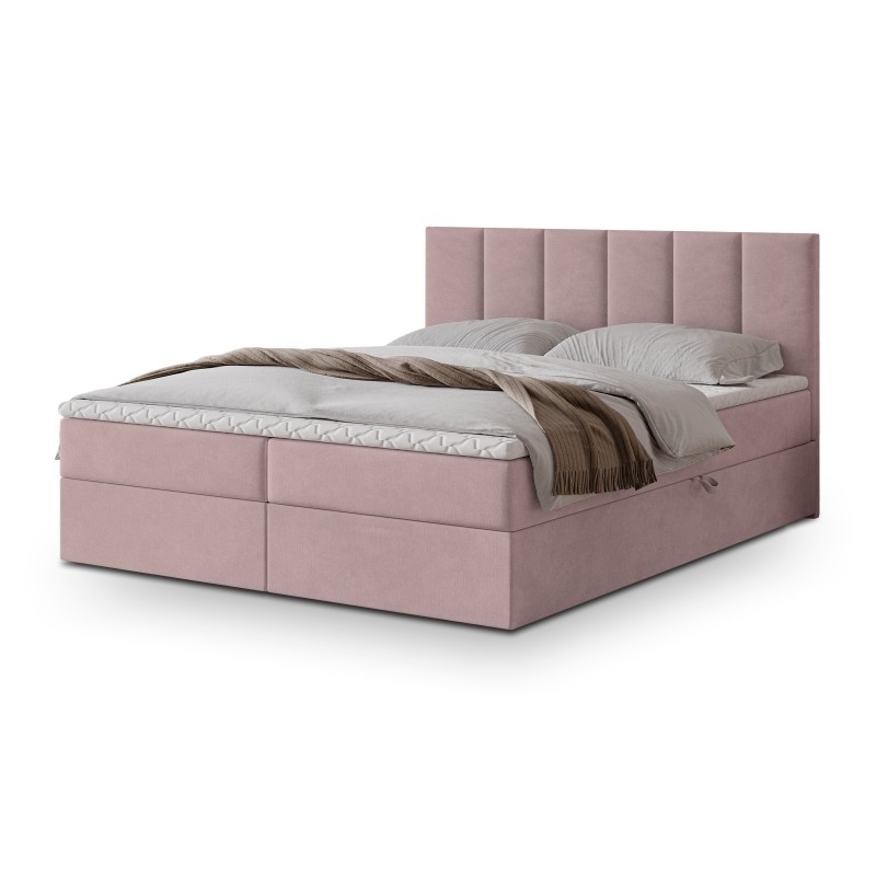 Serce łóżka stanowi materac bonellowy. To rozwiązanie, które zapewnia doskonałe podparcie sylwetki, odpowiednie rozłożenie ciężaru i komfortową pozycję przez całą noc. Dwa przestronne schowki umieszczone w podstawie łóżka bez trudu pomieszczą kołdry, poduszki, sezonową odzież czy inne domowe tekstylia.