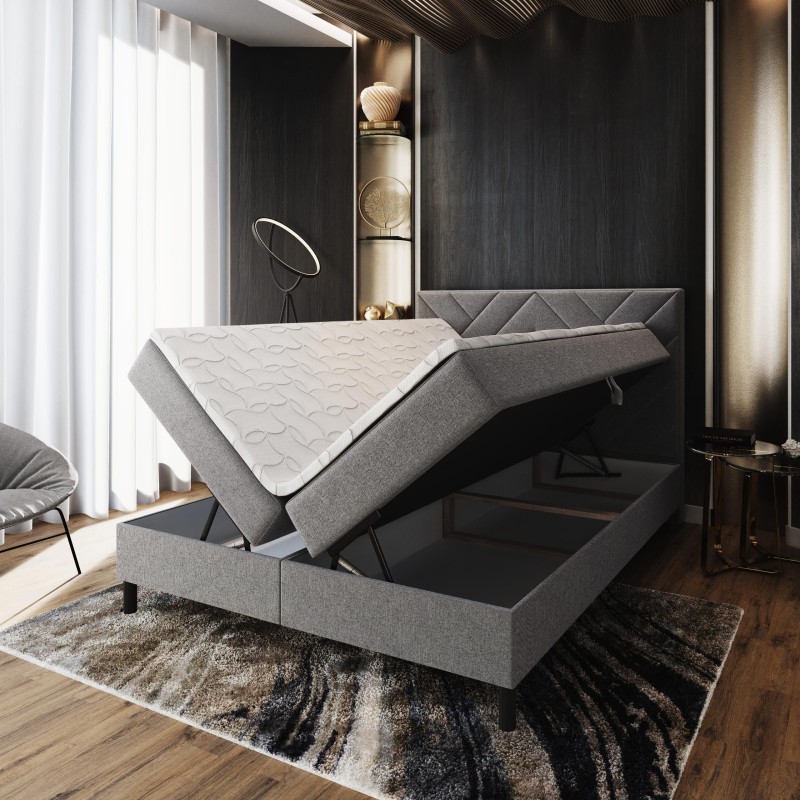 Pojemniki w łóżku posiadają aż do 850 litrów pojemności w największych rozmiarach łóżka. Dostęp do nich ułatwią Ci automaty sprężynowe. Pojemniki idealnie sprawdzą się do przechowywania pościeli, poduszek czy innych najpotrzebniejszych rzeczy. Bez problemu zapanujesz nad porządkiem w sypialni.