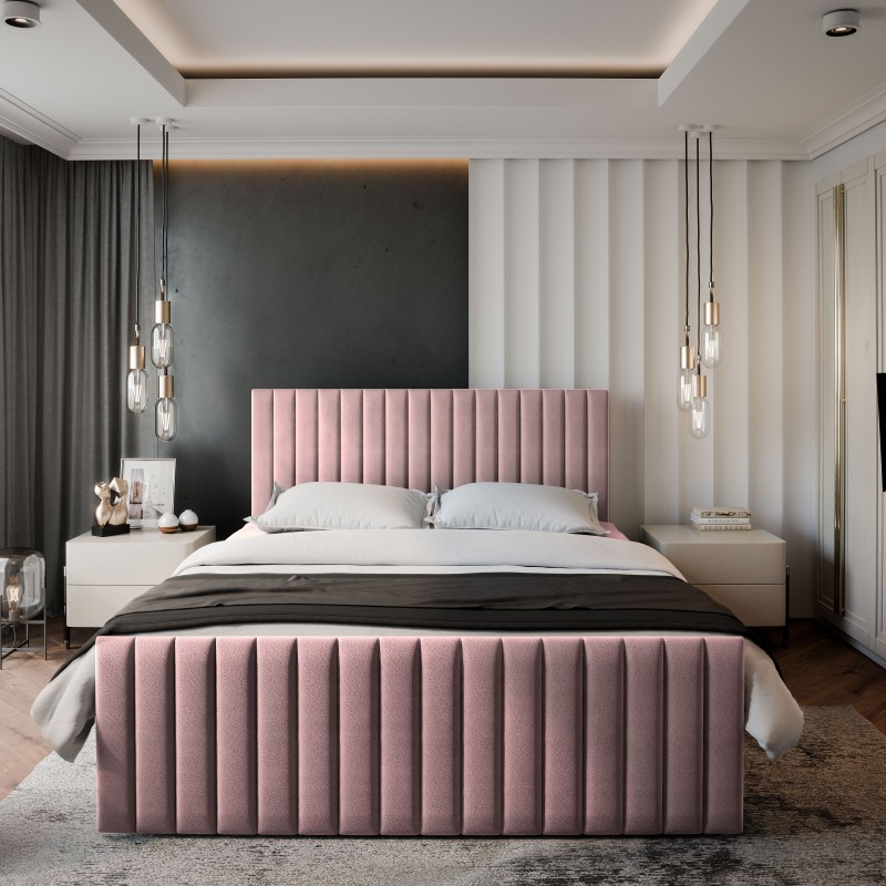 Masseno Łóżko kontynentalne ARION z pojemnikiem na pościel 160x200 cm - Pudrowy róż, KRONOS 27