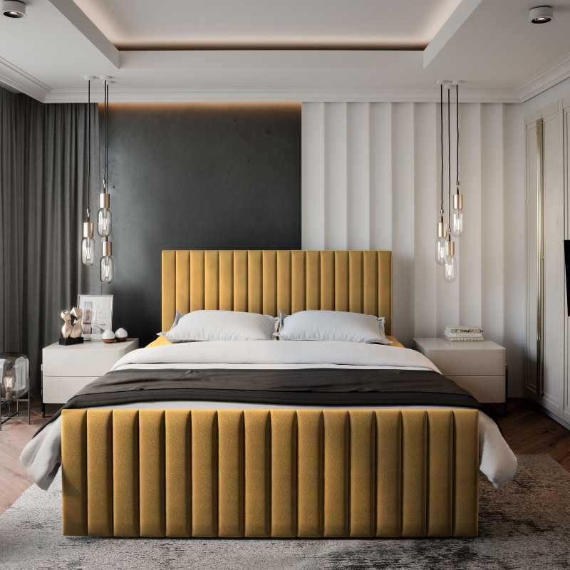 Masseno Łóżko kontynentalne ARION z pojemnikiem na pościel 180x200 cm - Żółty, KRONOS 01