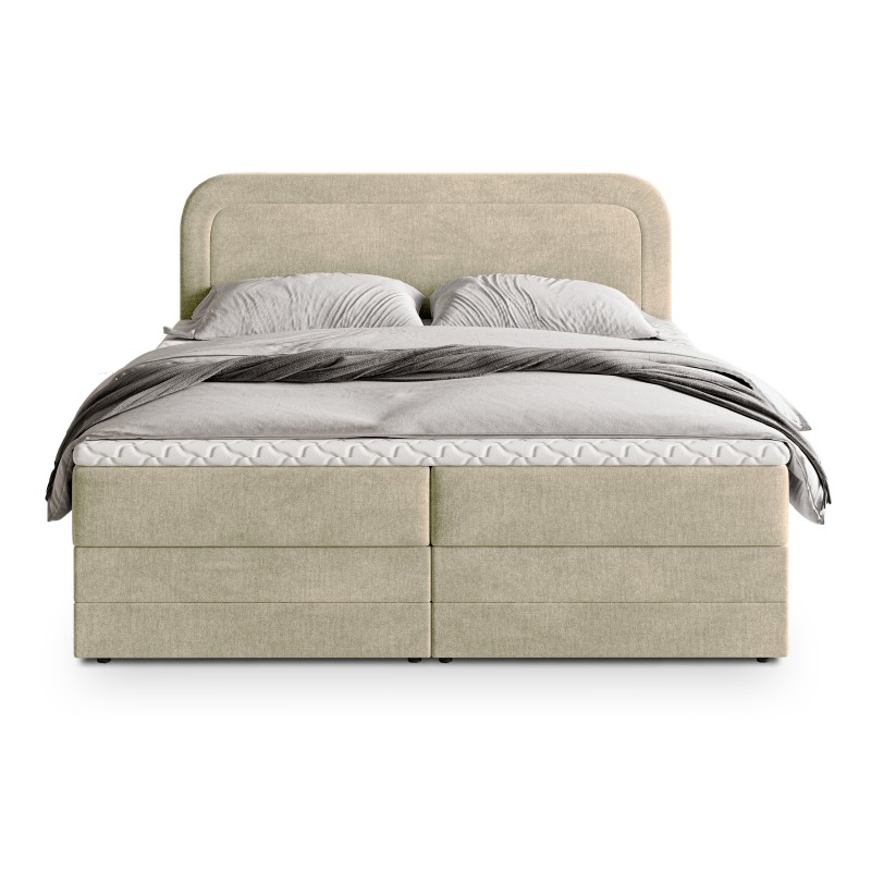 Łóżko kontynentalne ARMEL to połączenie nowoczesnego designu z funkcjonalnością, idealne dla osób ceniących komfort i styl. Tapicerowane modną tkaniną Now or Never, charakteryzującą się pętelkową strukturą typu bouclé, łóżko prezentuje się wyjątkowo elegancko i przytulnie. Dostępne w szerokiej gamie kolorystycznej, od kremowego po głęboką czerń, z łatwością dopasuje się do każdego wnętrza.
