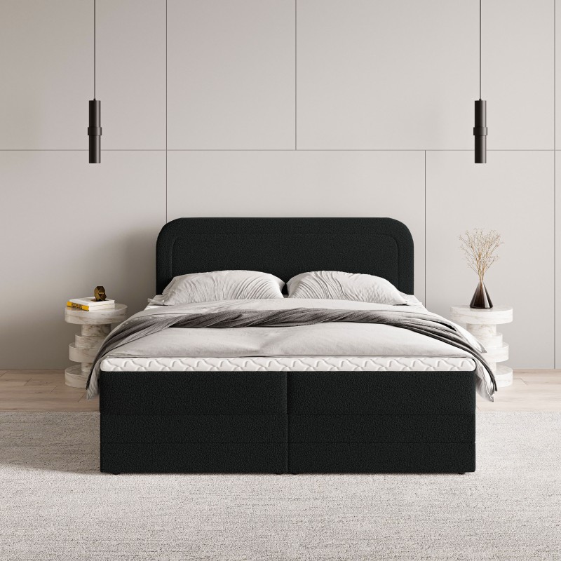 Masseno Łóżko kontynentalne ARMEL z pojemnikiem na pościel 160x200 cm - Czarny, NOW OR NEVER 100