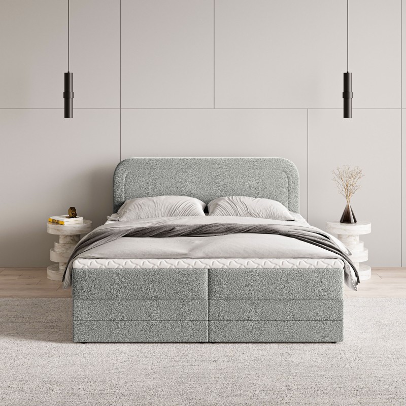 Łóżko kontynentalne ARMEL to połączenie nowoczesnego designu z funkcjonalnością, idealne dla osób ceniących komfort i styl. Tapicerowane modną tkaniną Now or Never, charakteryzującą się pętelkową strukturą typu bouclé, łóżko prezentuje się wyjątkowo elegancko i przytulnie. Dostępne w szerokiej gamie kolorystycznej, od kremowego po głęboką czerń, z łatwością dopasuje się do każdego wnętrza.