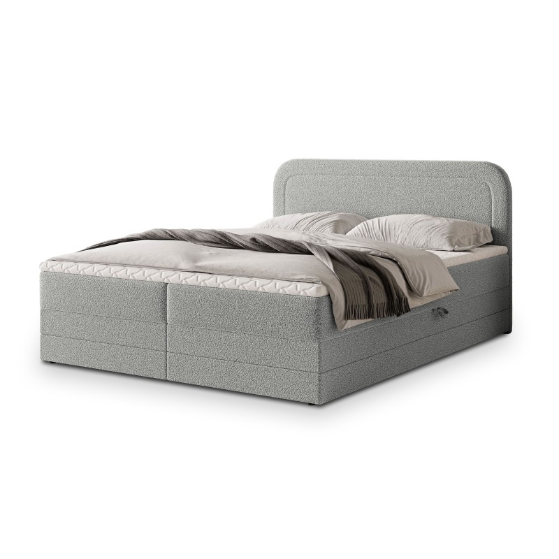 Masseno Łóżko kontynentalne ARMEL z pojemnikiem na pościel 160x200 cm - Jasnoszary, NOW OR NEVER 83