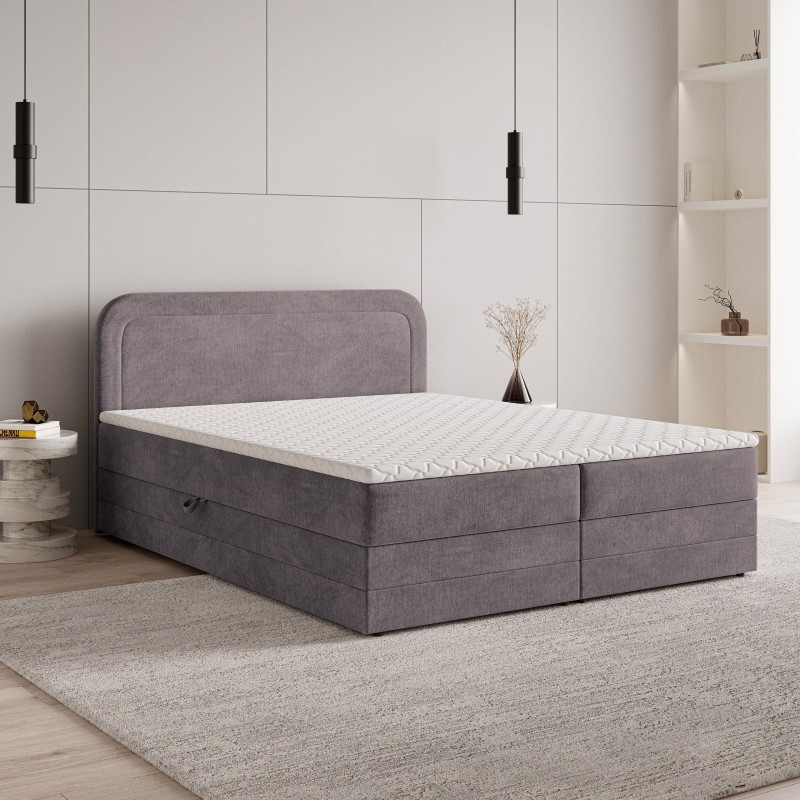 Model ARMEL wyposażony jest w zintegrowany materac bonellowy, zapewniający optymalne wsparcie dla kręgosłupa i komfortowy sen. Dodatkowo, łóżko posiada dwa pojemne schowki na pościel, otwierane za pomocą sprężynowego mechanizmu z wygodnymi uchwytami, co ułatwia codzienne użytkowanie. Solidna konstrukcja z drewna i płyty meblowej gwarantuje trwałość i stabilność mebla. Wysokie, przeszywane, zaoblone wezgłowie nie tylko dodaje łóżku elegancji, ale również zapewnia wygodne oparcie podczas wieczornego relaksu.