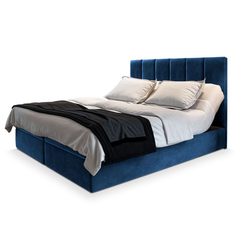 Łóżko kontynentalne, które łączy elegancję z nowoczesnym designem. Ten wyjątkowy mebel przyciąga wzrok szerokimi panelami z pionowymi przeszyciami, które nadają mu niepowtarzalny charakter. Tapicerka wykonana z modnej tkaniny Kronos, będącej połączeniem pluszu i weluru, zapewnia nie tylko luksusowy wygląd, ale również niezwykłą miękkość i przyjemność w dotyku.
