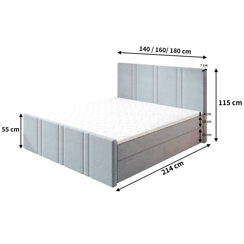 - Szerokość całkowita łóżka: 140/160/180 cm
