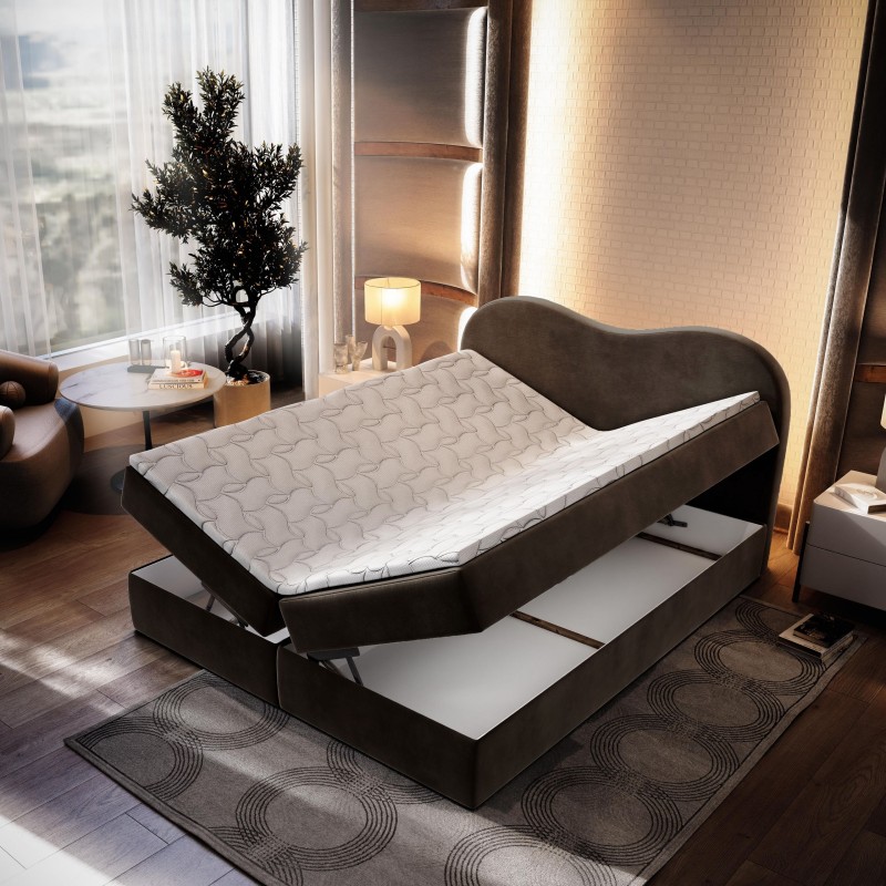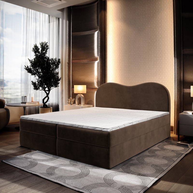 Masseno Łóżko kontynentalne FLUVIA z pojemnikiem na pościel 160x200 cm - Brązowy, MONOLITH 29