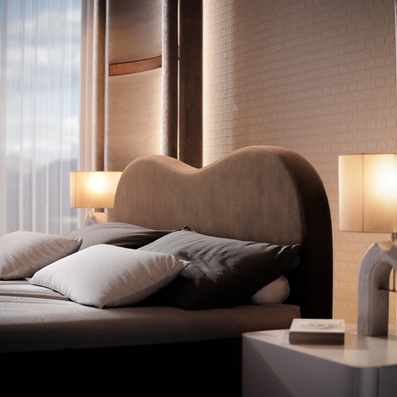 - Nowoczesne zaoblone linie i subtelne detale sprawiają, że łóżko FLUVIA doskonale komponuje się zarówno w nowoczesnych, jak i bardziej klasycznych wnętrzach. Dzięki minimalistycznej formie i wysokiej jakości tapicerce staje się centralnym punktem każdej sypialni.