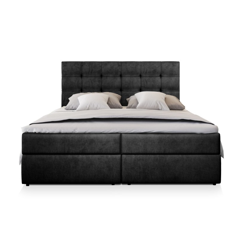 Masseno Łóżko kontynentalne GLOS z pojemnikiem na pościel 140x200 cm - Czarny, MONOLITH 95