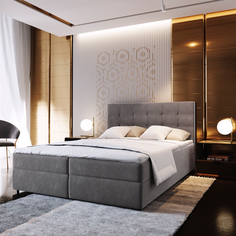 Masseno Łóżko kontynentalne GLOS z pojemnikiem na pościel 160x200 cm - Szary, COSMIC 160