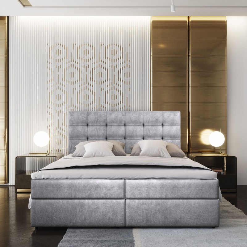 Masseno Łóżko kontynentalne GLOS z pojemnikiem na pościel 160x200 cm - Jasnoszary, MONOLITH 84