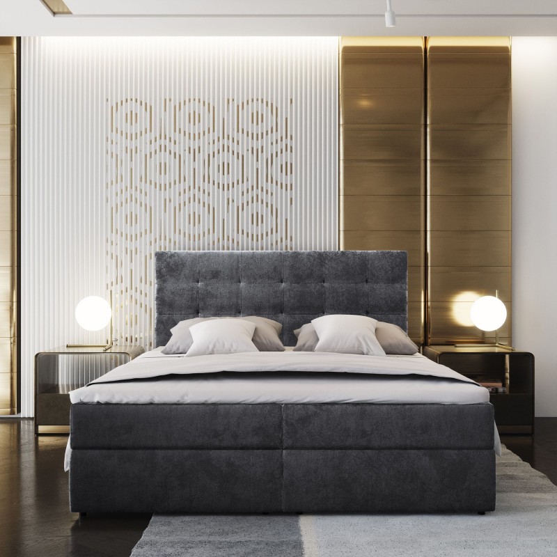 Masseno Łóżko kontynentalne GLOS z pojemnikiem na pościel 160x200 cm - Szary, PAROS 06