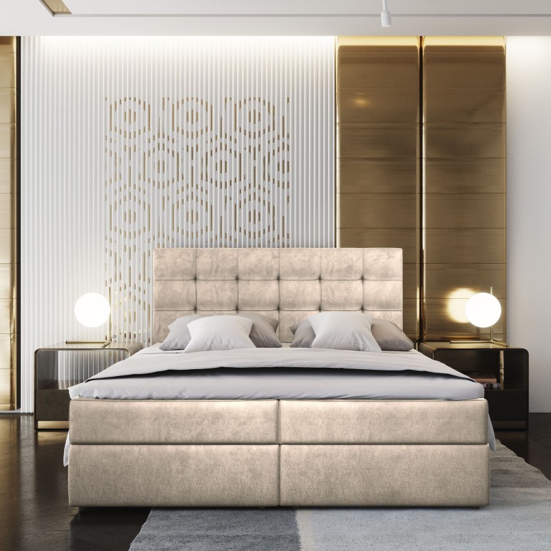 Masseno Łóżko kontynentalne GLOS z pojemnikiem na pościel 180x200 cm - Beżowy, MONOLITH 04