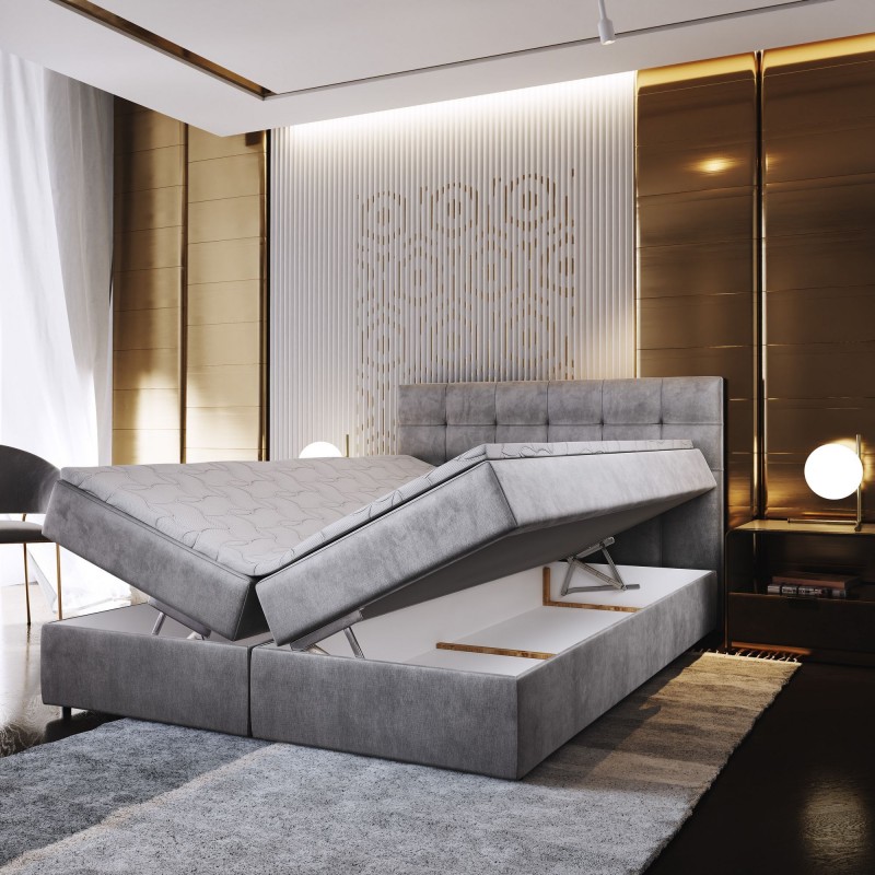 - Łóżko posiada wbudowane automaty sprężynowe dla łatwiejszego unoszenia materacy, dzięki takiemu rozwiązaniu zyskasz łatwy i wygodny dostęp do pojemnych schowków.