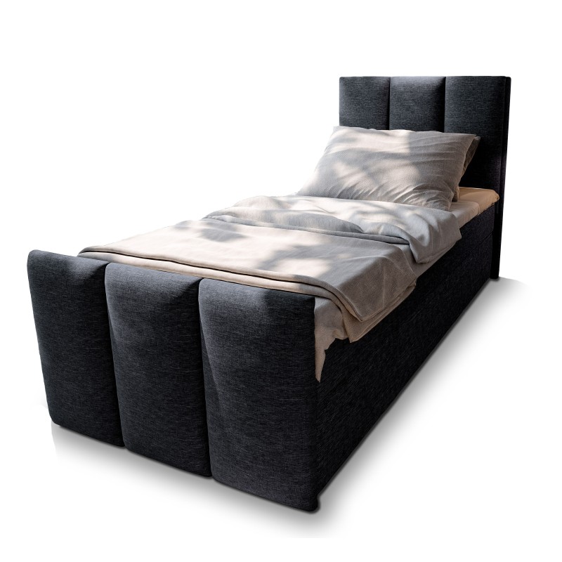 Masseno Łóżko pojedyncze LAGO z pojemnikiem na pościel 90x200 cm Młodzieżowe Kontynentalne Jednoosobowe - Czarny, SAWANA 14