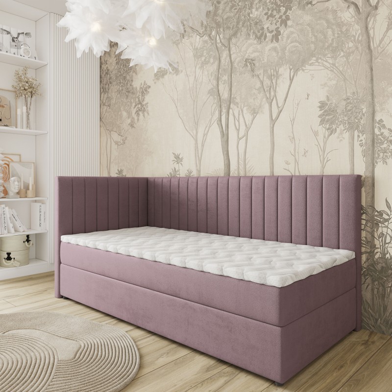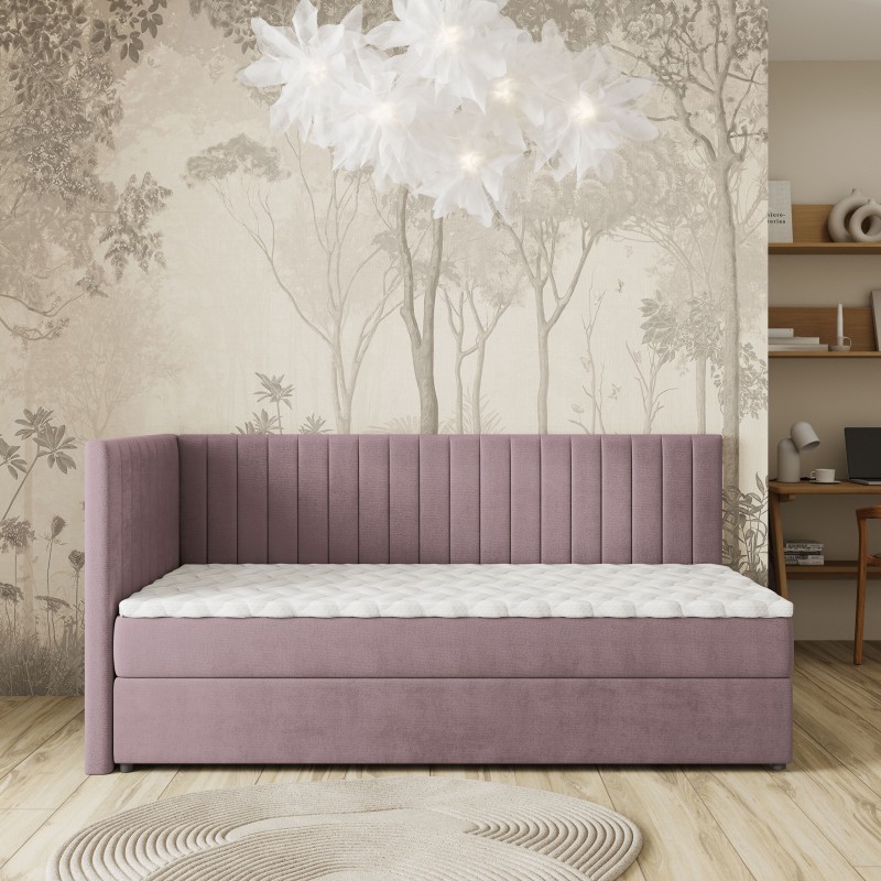 Masseno Łóżko pojedyncze ARIS z pojemnikiem na pościel 80x200 cm Młodzieżowe Kontynentalne Jednoosobowe - Pudrowy róż, KRONOS 27