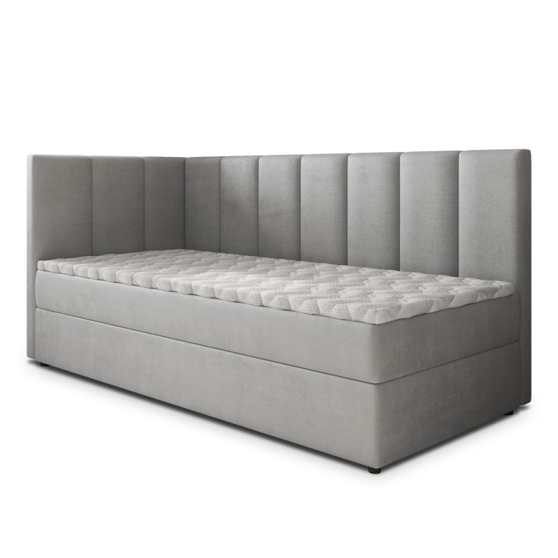 Masseno Łóżko pojedyncze BEVE z pojemnikiem na pościel 100x200 cm Młodzieżowe Kontynentalne Jednoosobowe - Jasnoszary, PAROS 05