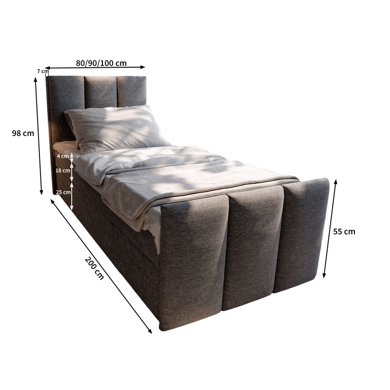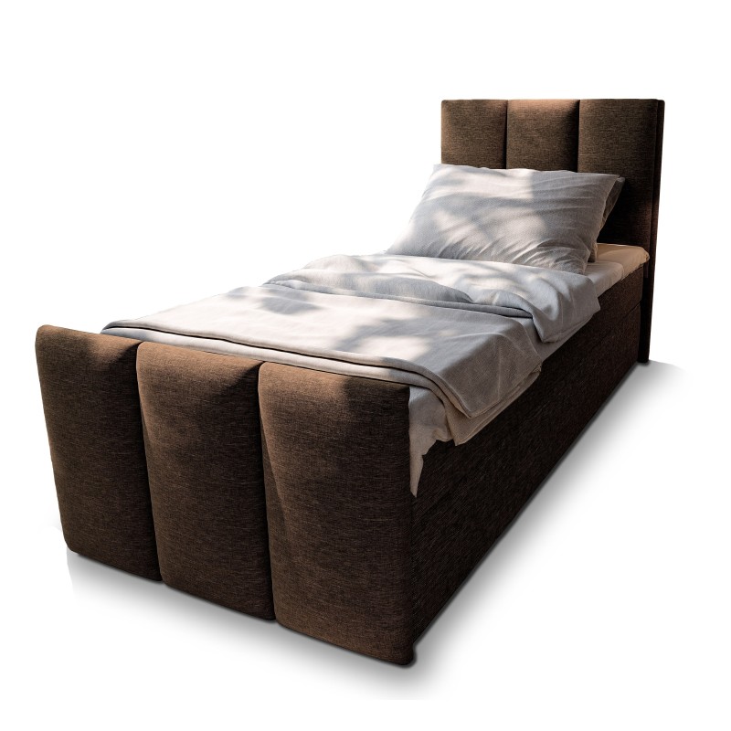 Masseno Łóżko pojedyncze LAGO z pojemnikiem na pościel 100x200 cm Młodzieżowe Kontynentalne Jednoosobowe - Brązowy, SAWANA 16