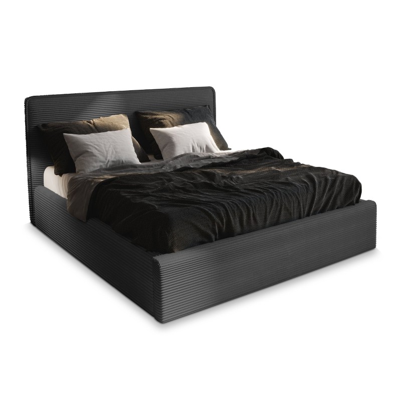 Masseno Łóżko tapicerowane PARMA z pojemnikiem na pościel 140x200 cm - Grafitowy, LINCOLN 90