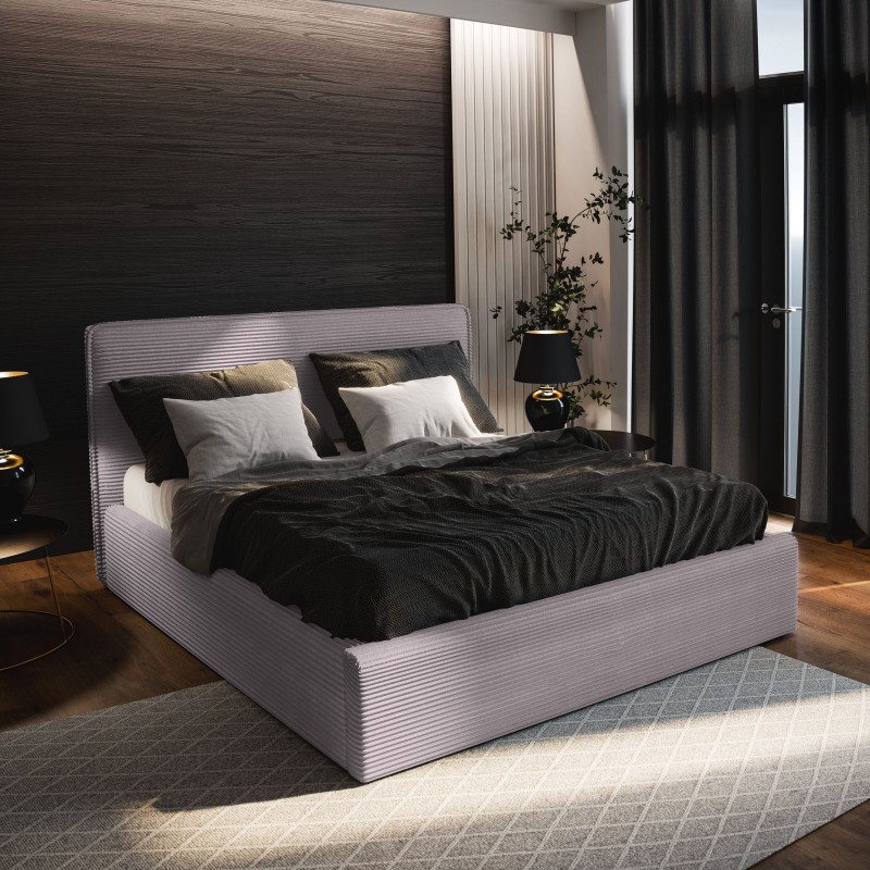 - Sztruksowy materiał nadaje meblowi ponadczasowego designu i stylu. A szeroki wybór kolorów pozwoli Ci dopasować łóżko do różnych aranżacji wnętrz.
