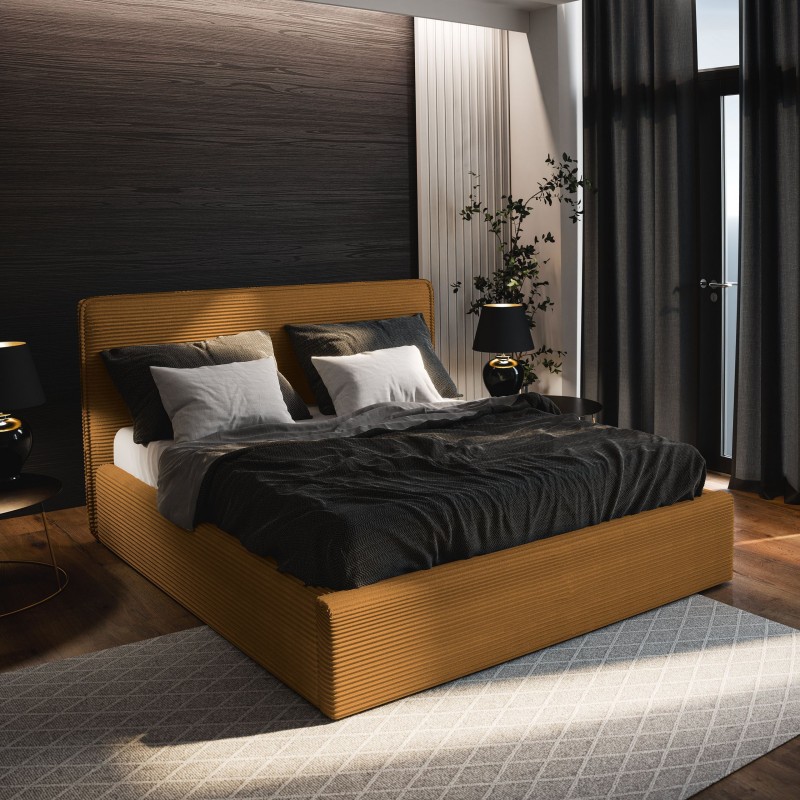 - Sztruksowy materiał nadaje meblowi ponadczasowego designu i stylu. A szeroki wybór kolorów pozwoli Ci dopasować łóżko do różnych aranżacji wnętrz.