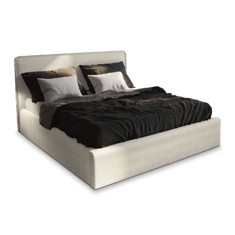Masseno Łóżko tapicerowane PARMA z pojemnikiem na pościel 140x200 cm - Kremowy, LINCOLN 03