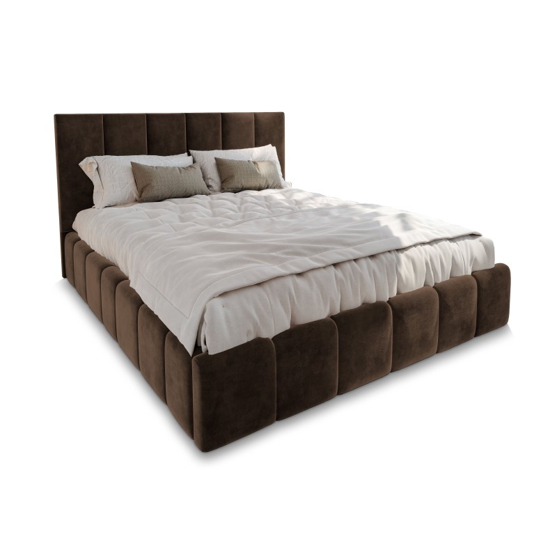 Masseno Łóżko tapicerowane TARANTO z pojemnikiem na pościel 140x200 cm - Brązowy, MONOLITH 29