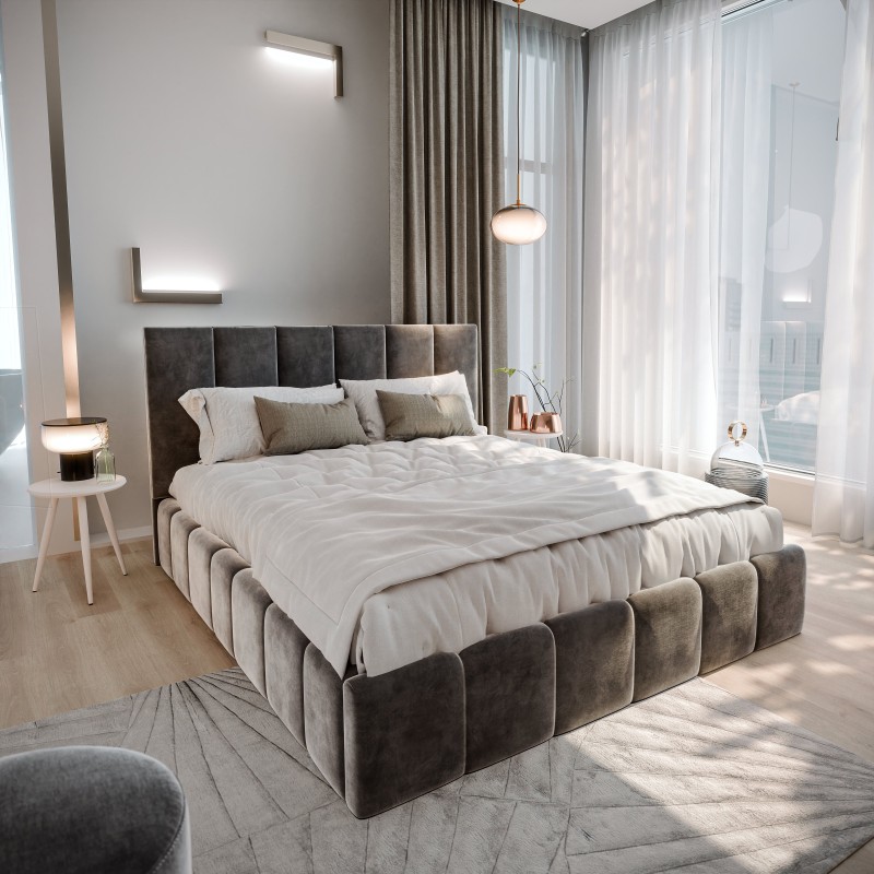 Łóżko tapicerowane TARANTO to doskonałe połączenie elegancji, funkcjonalności i wygody. Jego konstrukcję stanowią miękkie tapicerowane panele, które nadają mu niezwykłą przytulność. Dostępne w najbardziej popularnych rozmiarach, łóżko TARANTO gwarantuje idealne dopasowanie do Twoich preferencji i potrzeb.