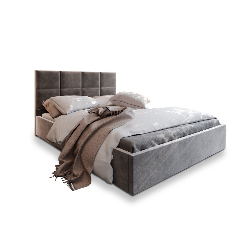 Masseno Łóżko tapicerowane LIMENA z pojemnikiem na pościel 140x200 cm - Jasnoszary, PAROS 05