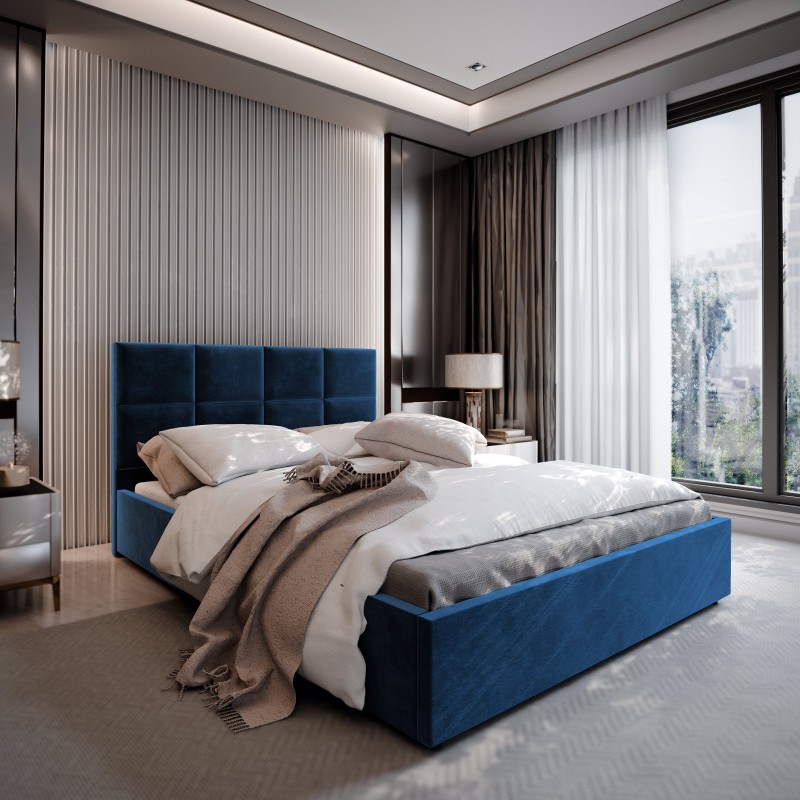 Masseno Łóżko tapicerowane LIMENA z pojemnikiem na pościel 140x200 cm - Niebieski, KRONOS 09