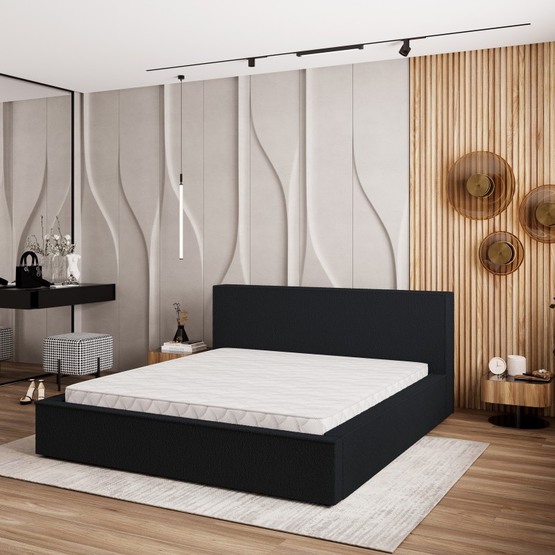 Masseno Łóżko tapicerowane CELORA z pojemnikiem na pościel 140x200 cm - Czarny, QUELLE 100