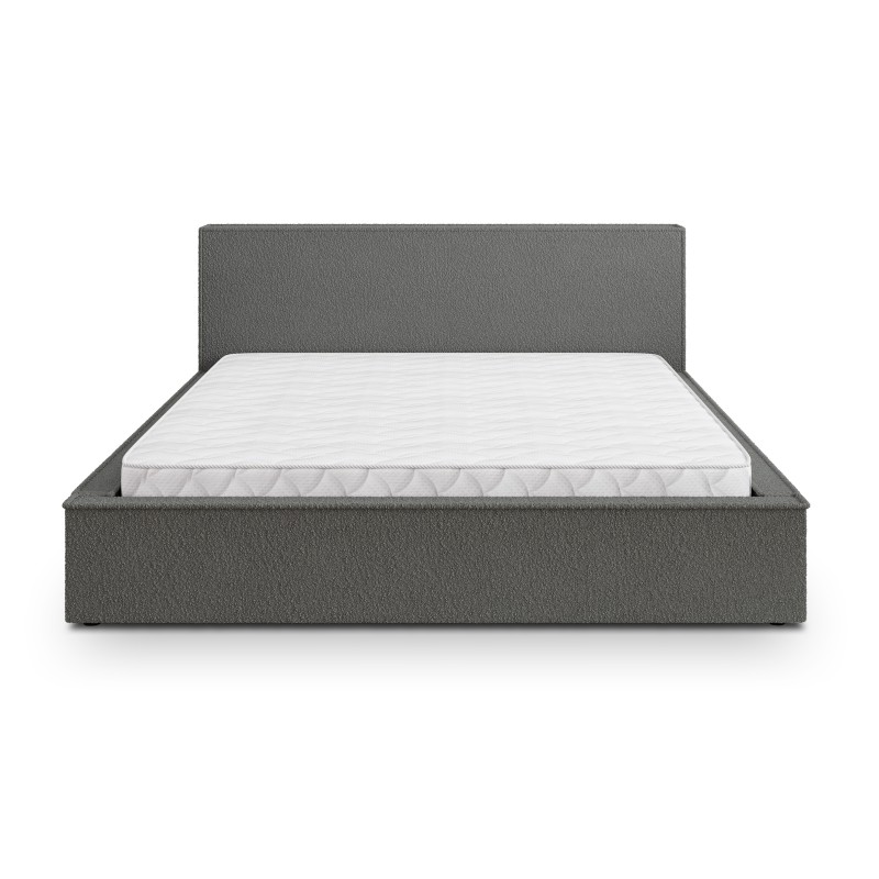 - Obicie wykonano z modnej tkaniny bouclé, której pętelkowa struktura jest zarówno wyrazista, jak i przyjemna w dotyku. Materiał ten dodaje wnętrzu ciepła i nowoczesnego charakteru, sprawiając, że łóżko staje się centralnym punktem pomieszczenia.