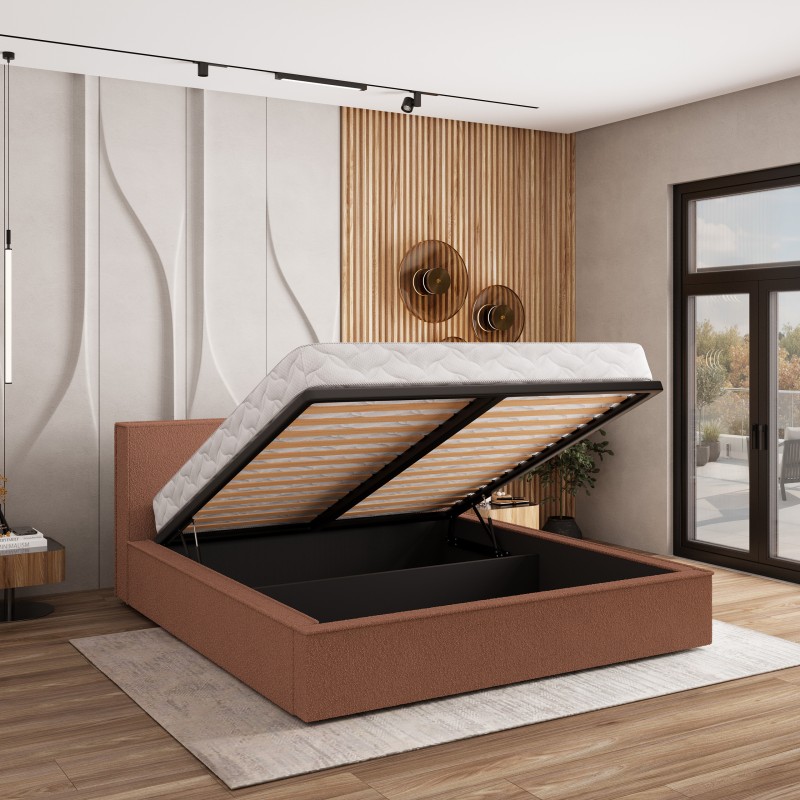 Masseno Łóżko tapicerowane CELORA z pojemnikiem na pościel 140x200 cm - Miedziany, QUELLE 54