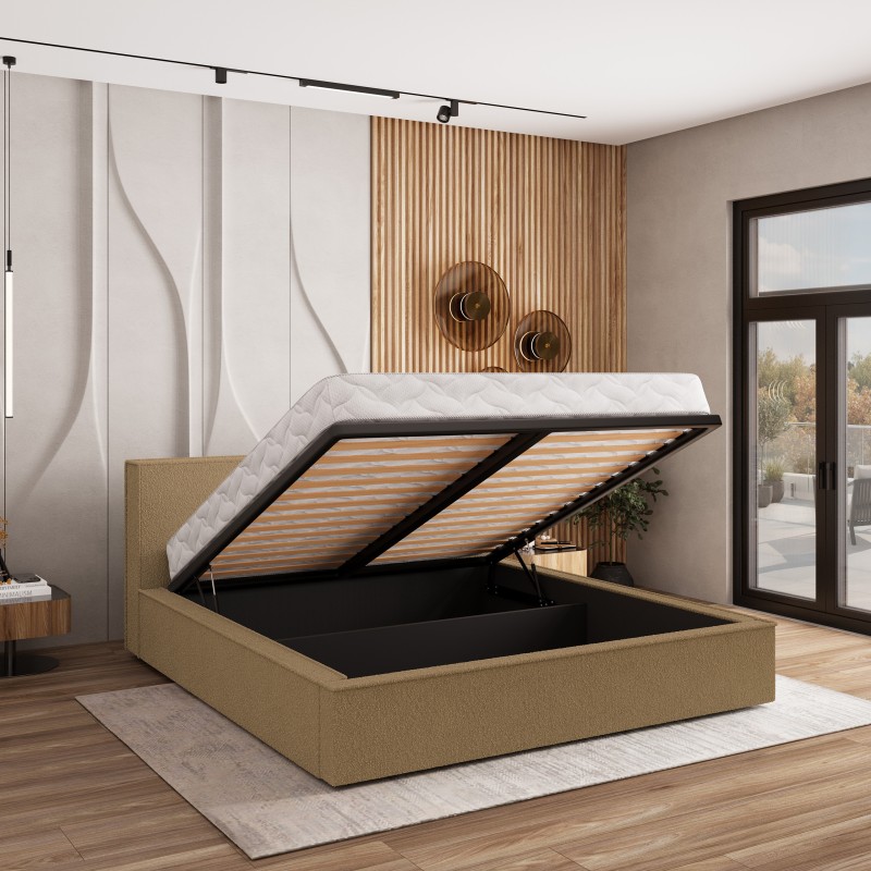 Masseno Łóżko tapicerowane CELORA z pojemnikiem na pościel 140x200 cm - Miodowy, QUELLE 17