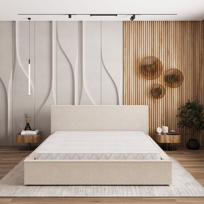 Masseno Łóżko tapicerowane CELORA z pojemnikiem na pościel 140x200 cm - Kremowy, QUELLE 02