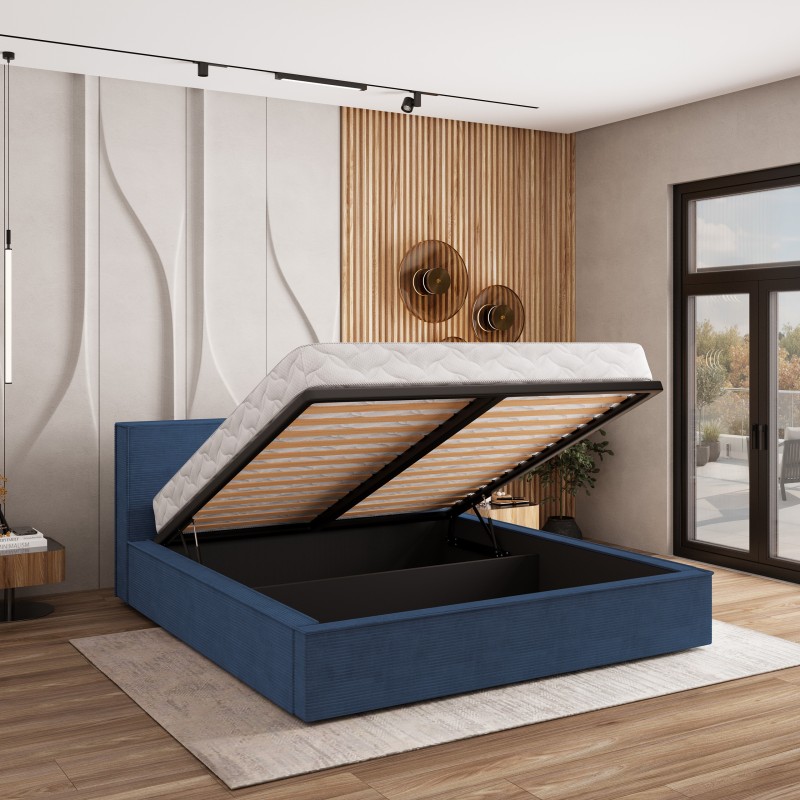 Masseno Łóżko tapicerowane CELORA z pojemnikiem na pościel 140x200 cm - Niebieski, POSO 05