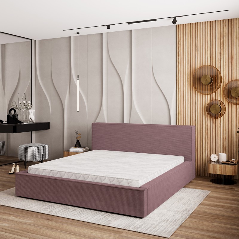 Masseno Łóżko tapicerowane CELORA z pojemnikiem na pościel 140x200 cm - Wrzosowy, POSO 130