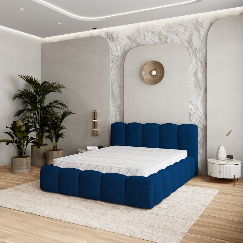 Masseno Łóżko tapicerowane FALINA z pojemnikiem na pościel 140x200 cm - Niebieski, KRONOS 09