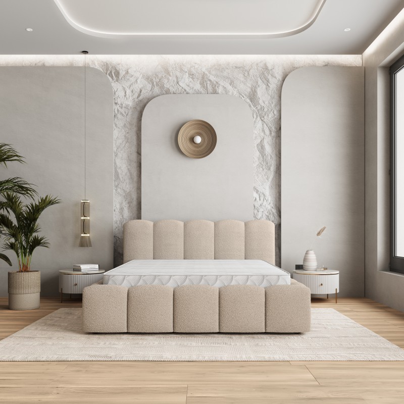 Masseno Łóżko tapicerowane FALINA z pojemnikiem na pościel 140x200 cm - Beżowy, QUELLE 05