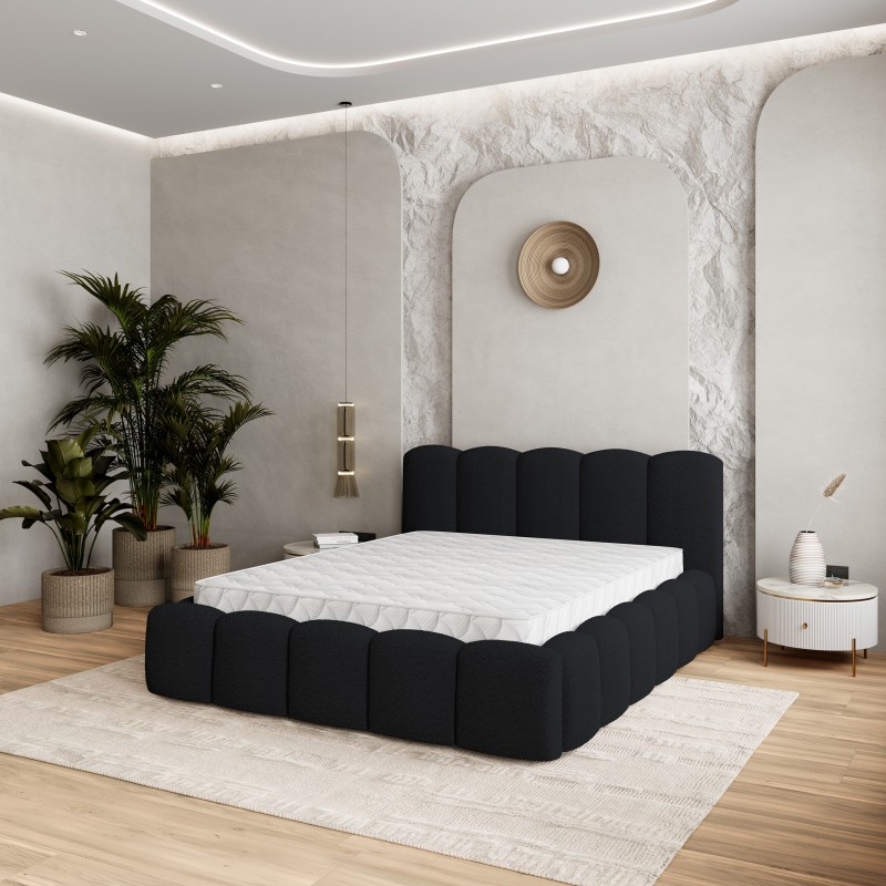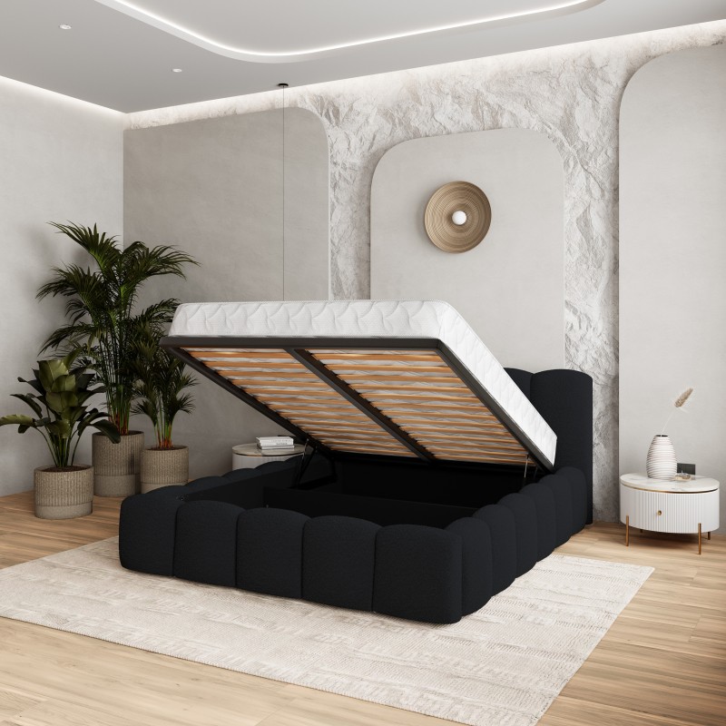 Masseno Łóżko tapicerowane FALINA z pojemnikiem na pościel 140x200 cm - Czarny, QUELLE 100